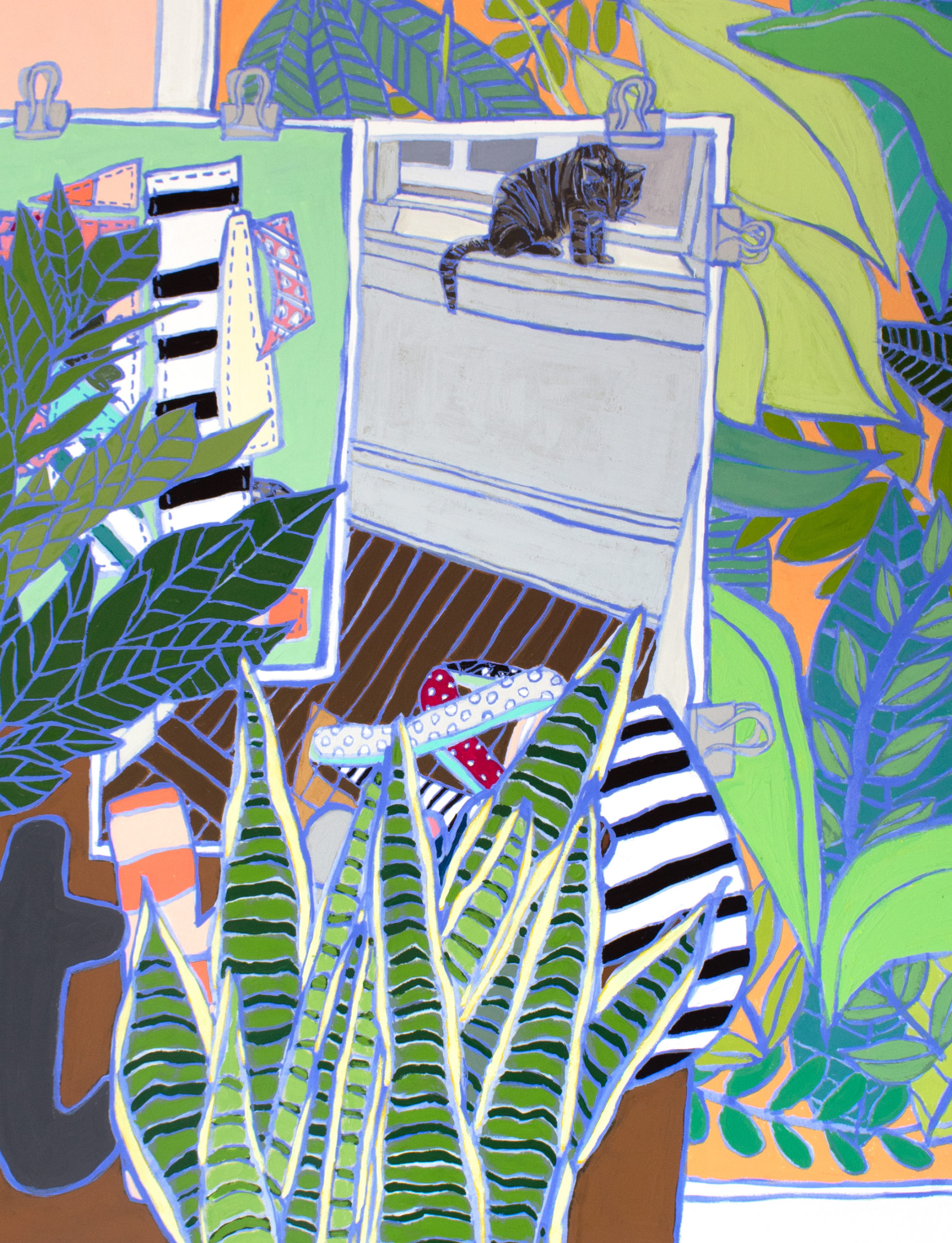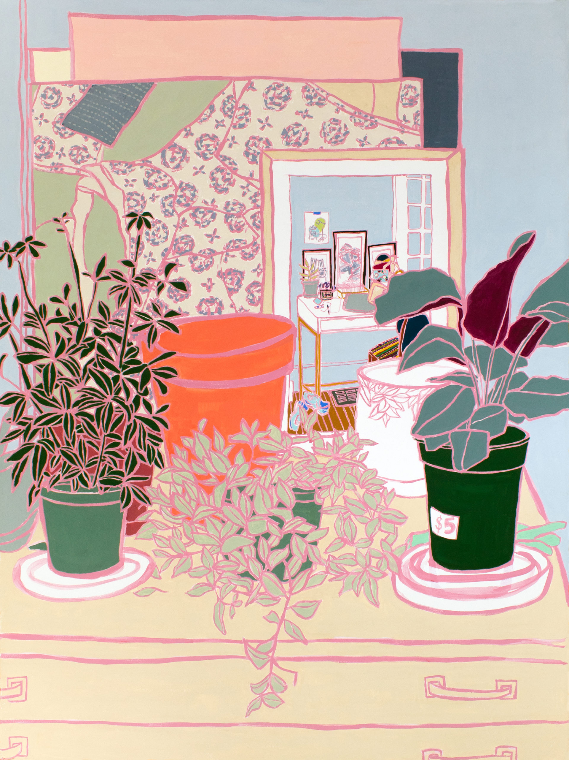 Within my work, interior spaces are used as both a documentation of time and as a way to explore my identity through introspection. By capturing quiet, quotidian scenes where domestic objects are interwoven with artistic processes, the work creates room for confusion and reflection. Layered with recognizable objects and ambiguous imagery, and with titles take from lines of my own poetry, the paintings invite the viewer into a pictorial space primed for contemplation. Flattening time into a composite, the paintings gather the past, present, and future into one singular space to communicate a nonlinear personal history.