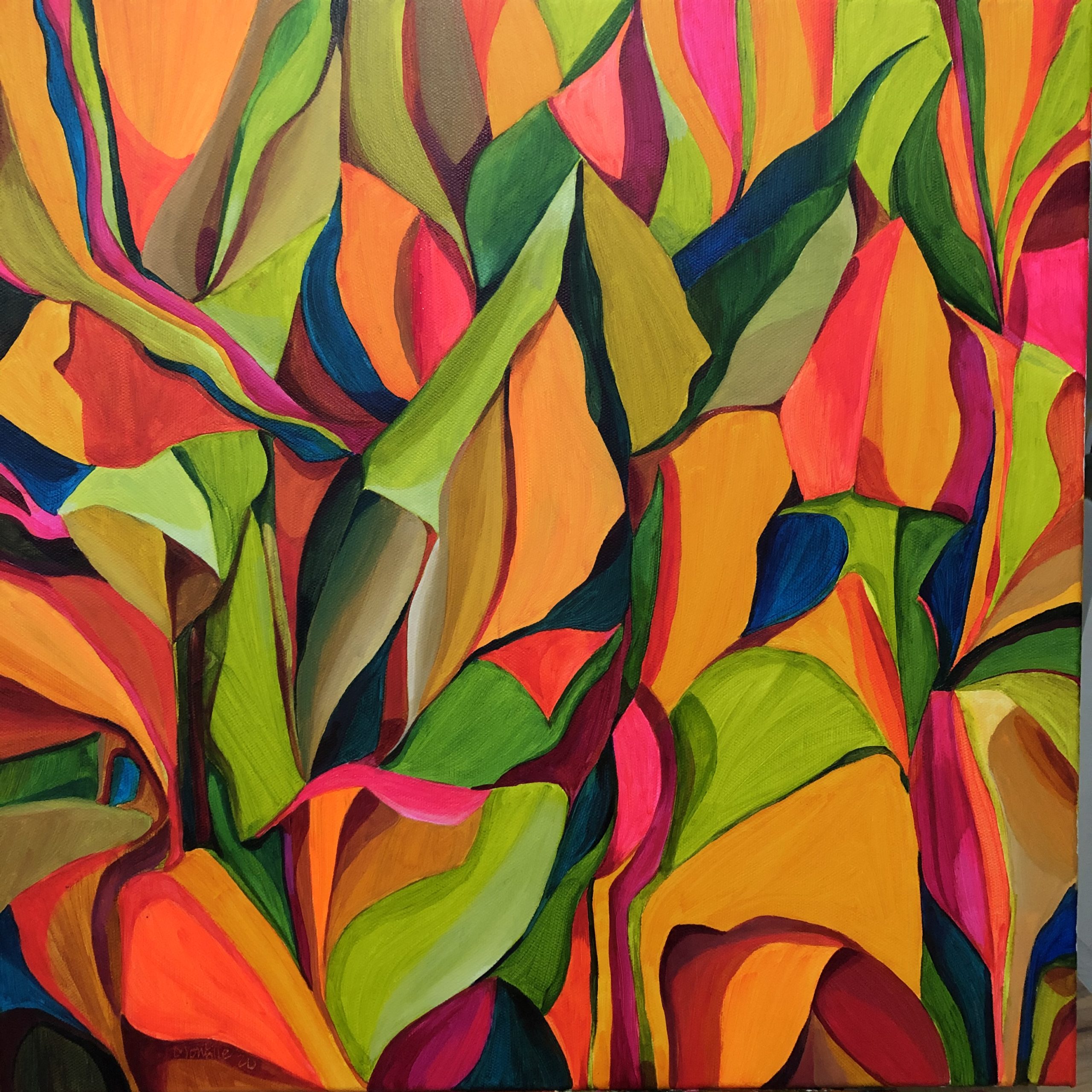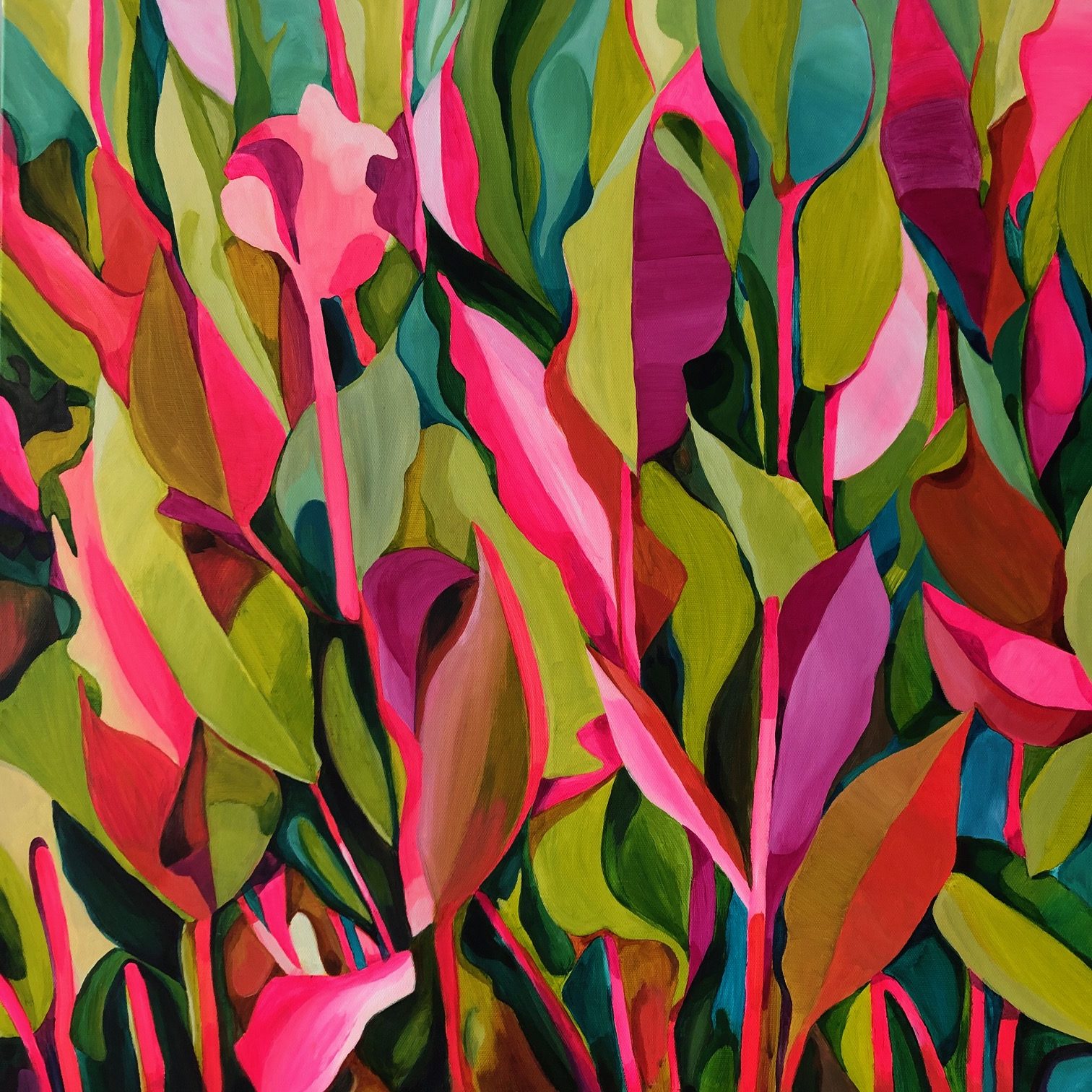 The boundless colours unique to the tropical traits of South East Asian region. Guided by foliage, my compositions represent a deep understanding of the natural world and an awe of its unpredictable flow. My work incorporates bold, somewhat delicate shapes of intuitive abstraction. The natural complexity of colours lead to a dreamy organic composition of feminine perspective, both lush and abundant.