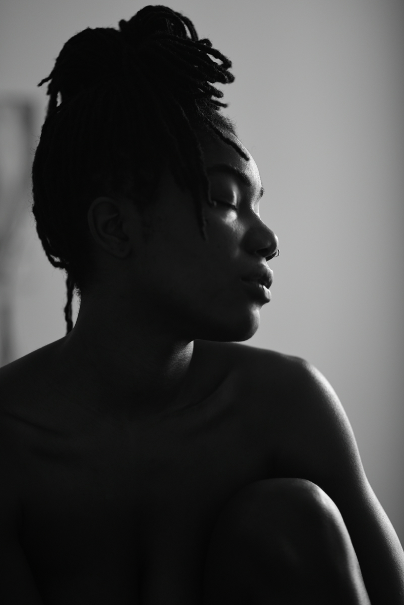 These images are achieved in spaces with minimal lighting, setting the camera in B&W color mode to better see the shapes of light and shadow on the body, and enlisting the help of models comfortable in their most vulnerable skin, nudity. This represents my developed appreciation and relationship with skin, and my heart’s desire to honor people for who they are, as they are.