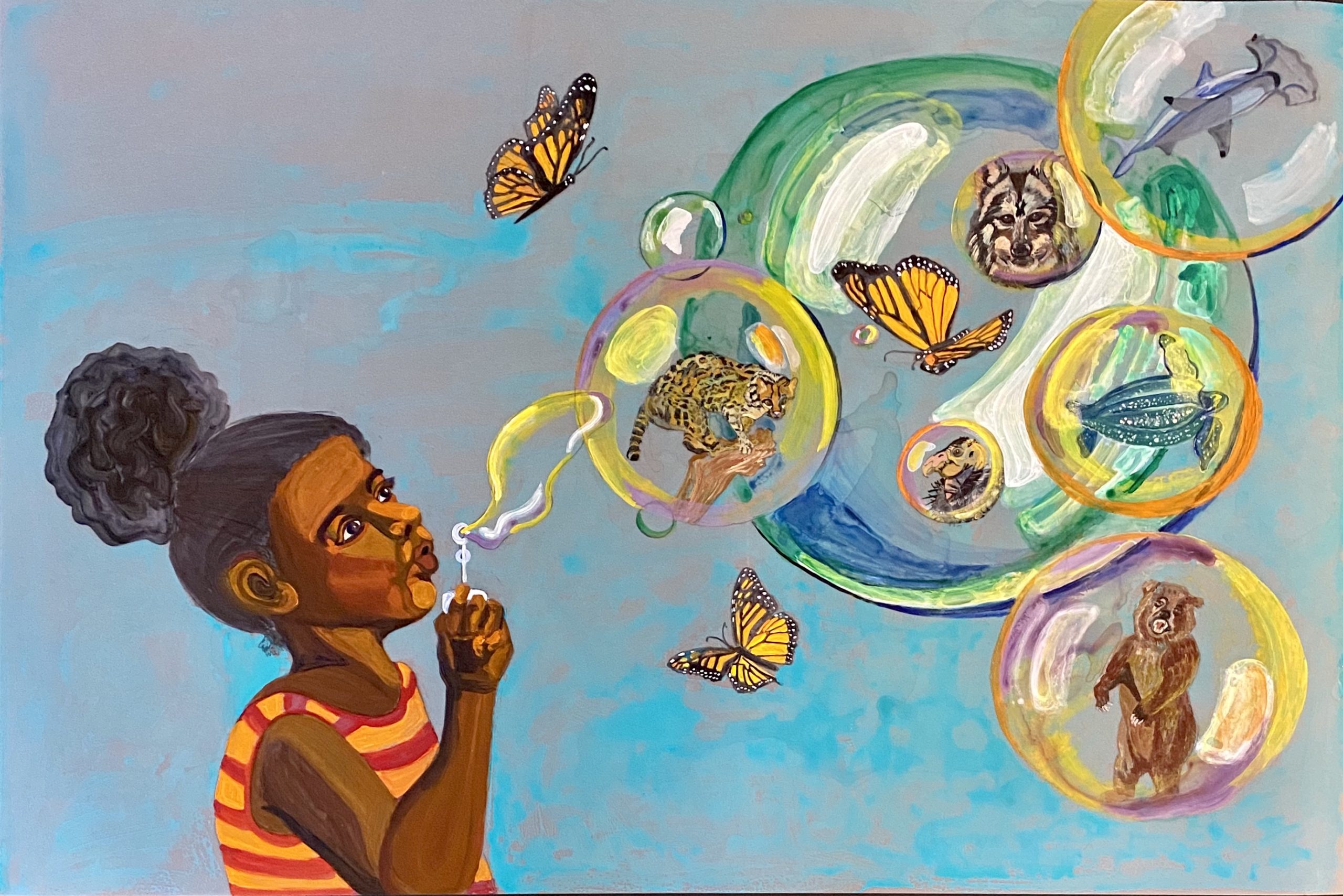 This work is concerned with the fragile, beautiful creatures of this planet that are endangered due to human activity. It seeks to highlight their plight by presenting their portraits in an aesthetically pleasing way. One of the works also acknowledges that human imagination is also endangered due to the lack of funding for the arts in many of our primary and secondary schools.